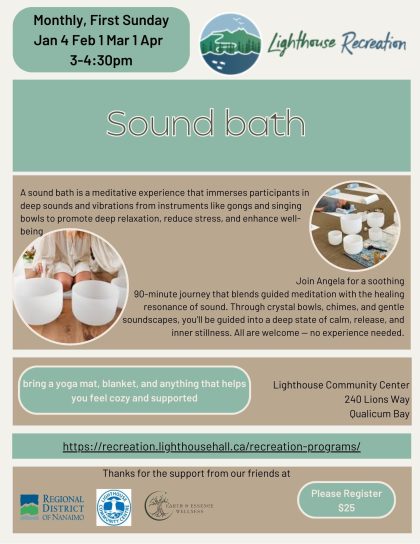 A sound bath is a meditative experience that immerses participants in deep sounds and vibrations from instruments like gongs and singing bowls to promote deep relaxation, reduce stress, and enhance well-being. Join Angela for a